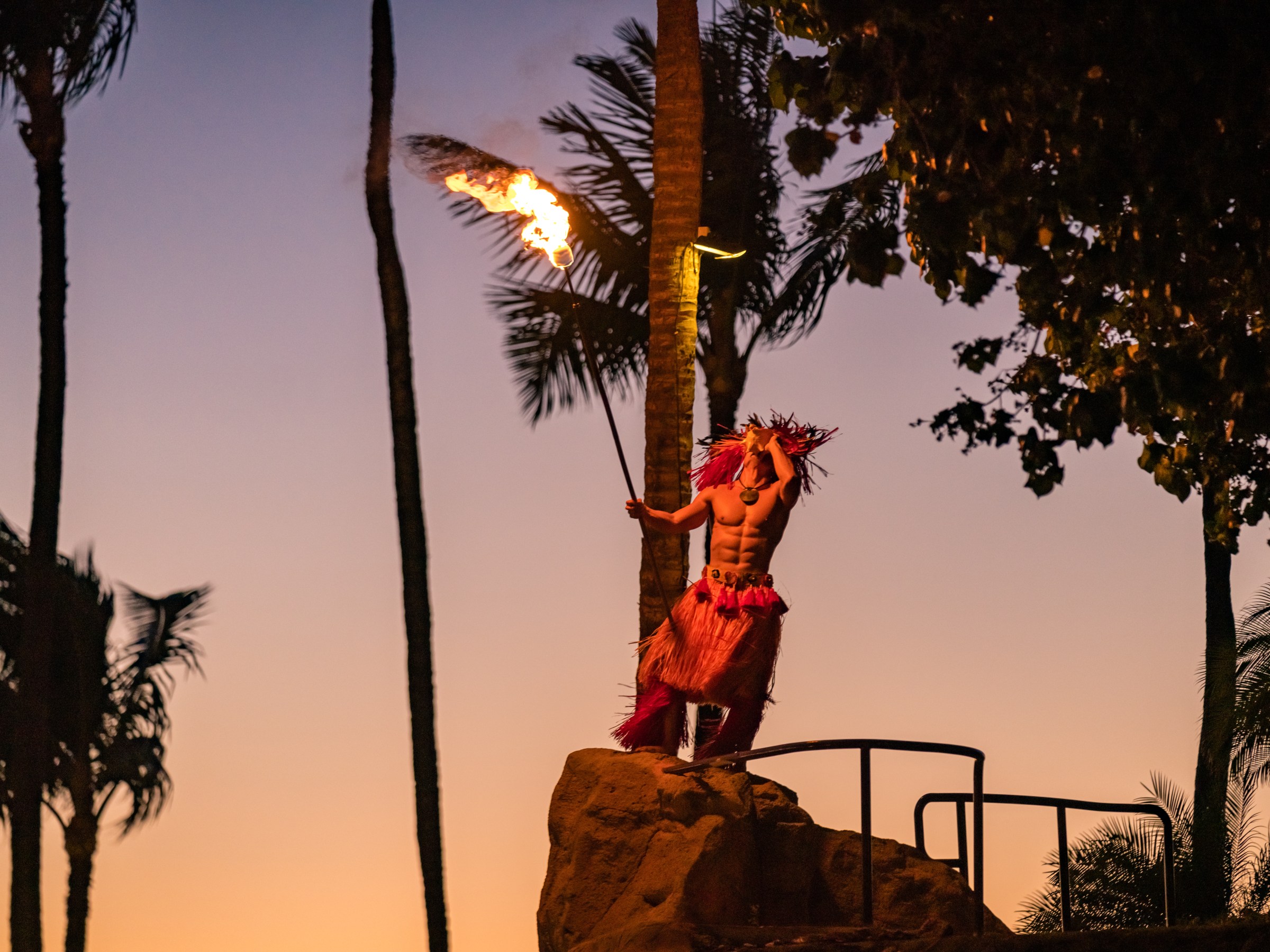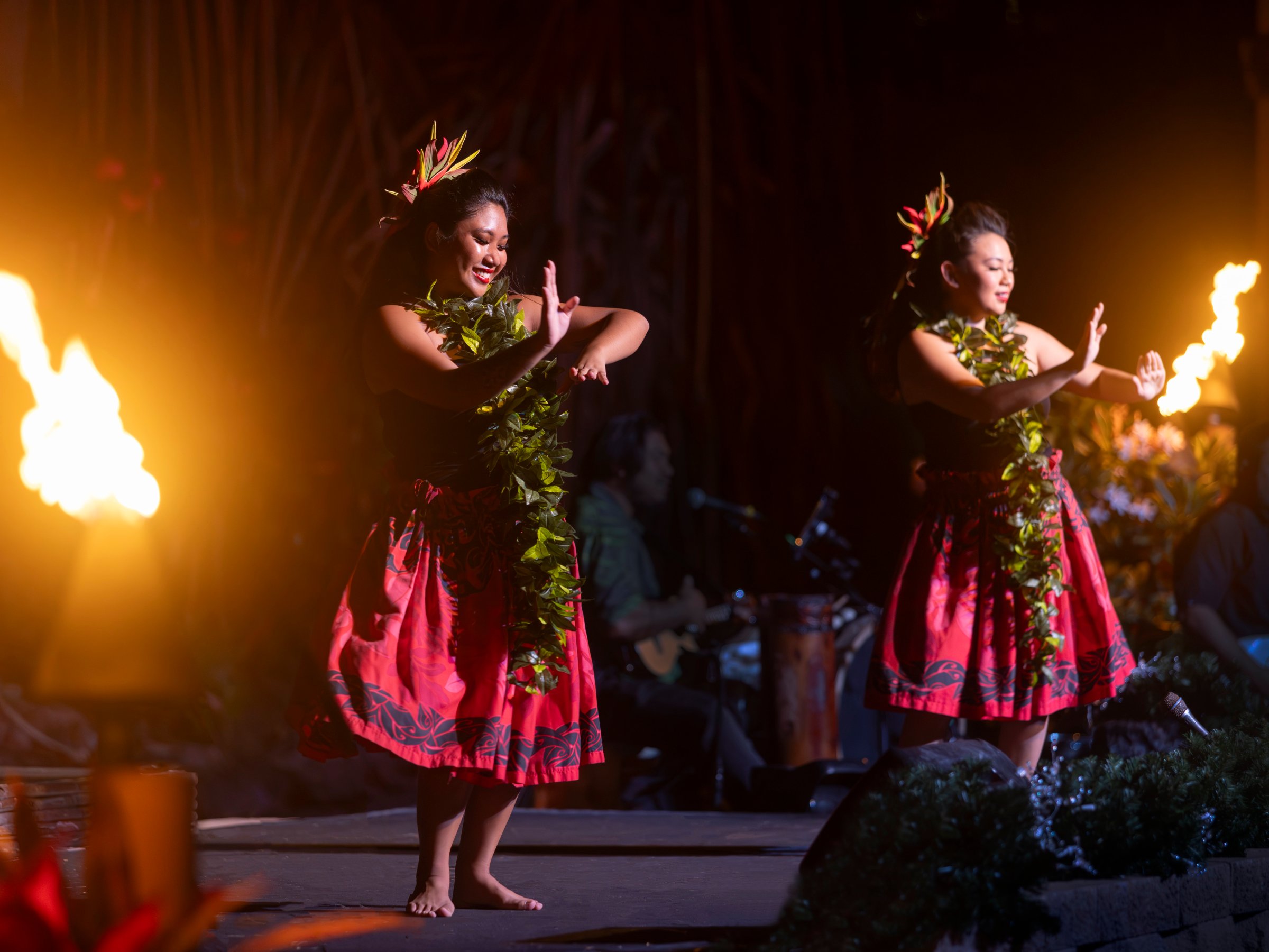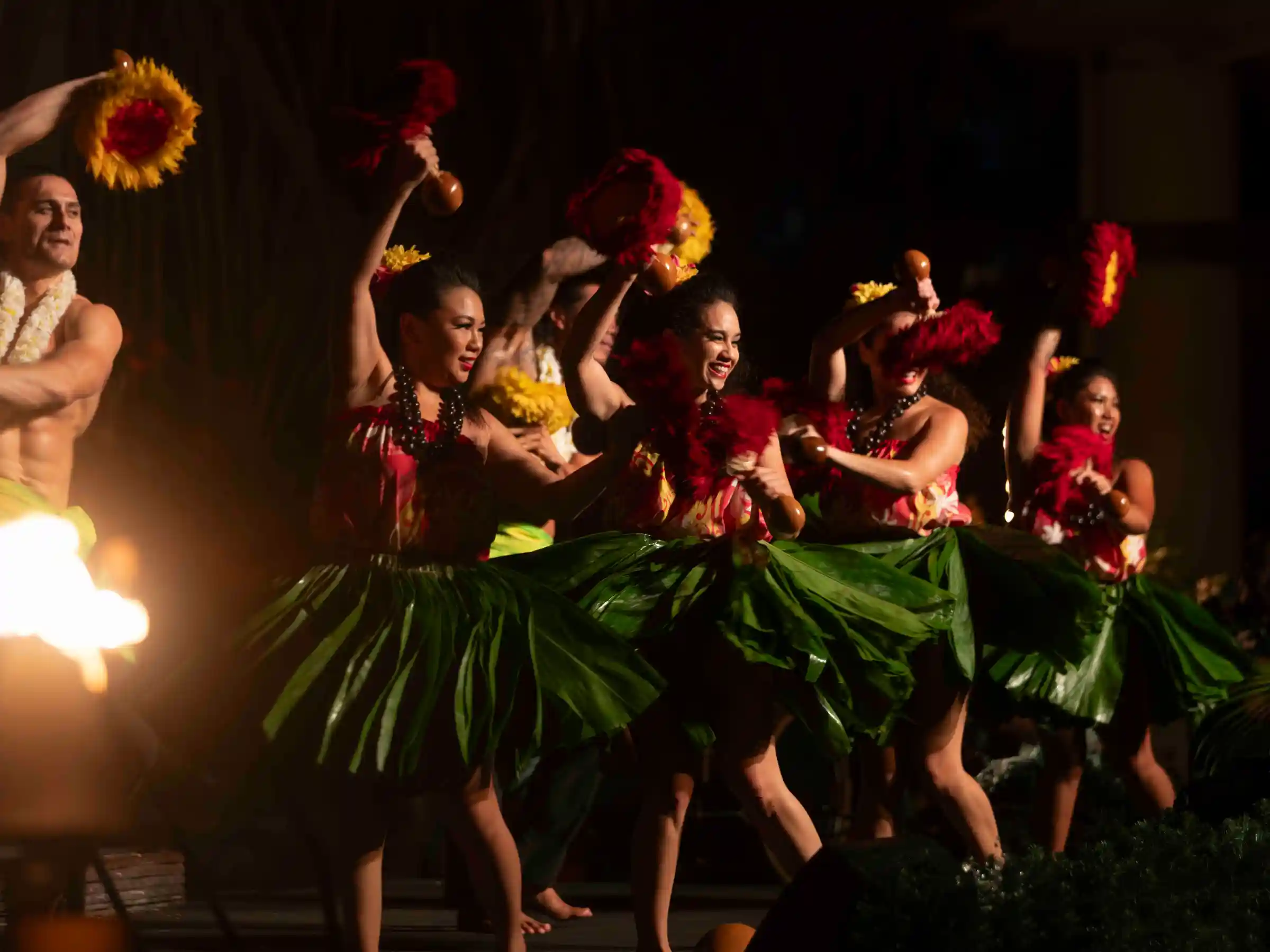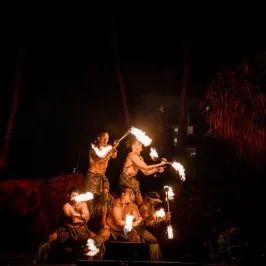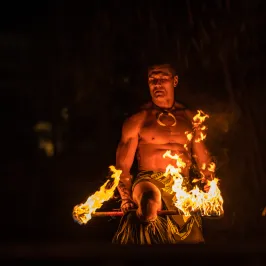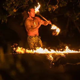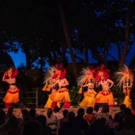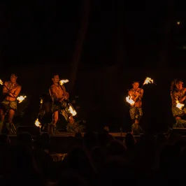 Experience the mesmerizing fire and dance performances of a traditional Hawaiian luau, celebrating the rich cultural heritage of the islands under the starlit sky.